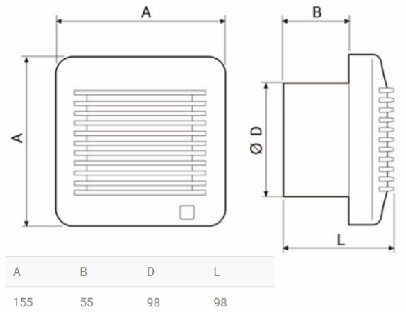 | Aftræksdimension (mm) | Ø160 |