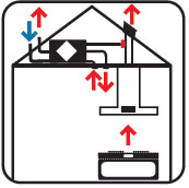 Bruges når ekstra støjsvag udsugning ønskes. Fåes til loft, tag eller væg montering